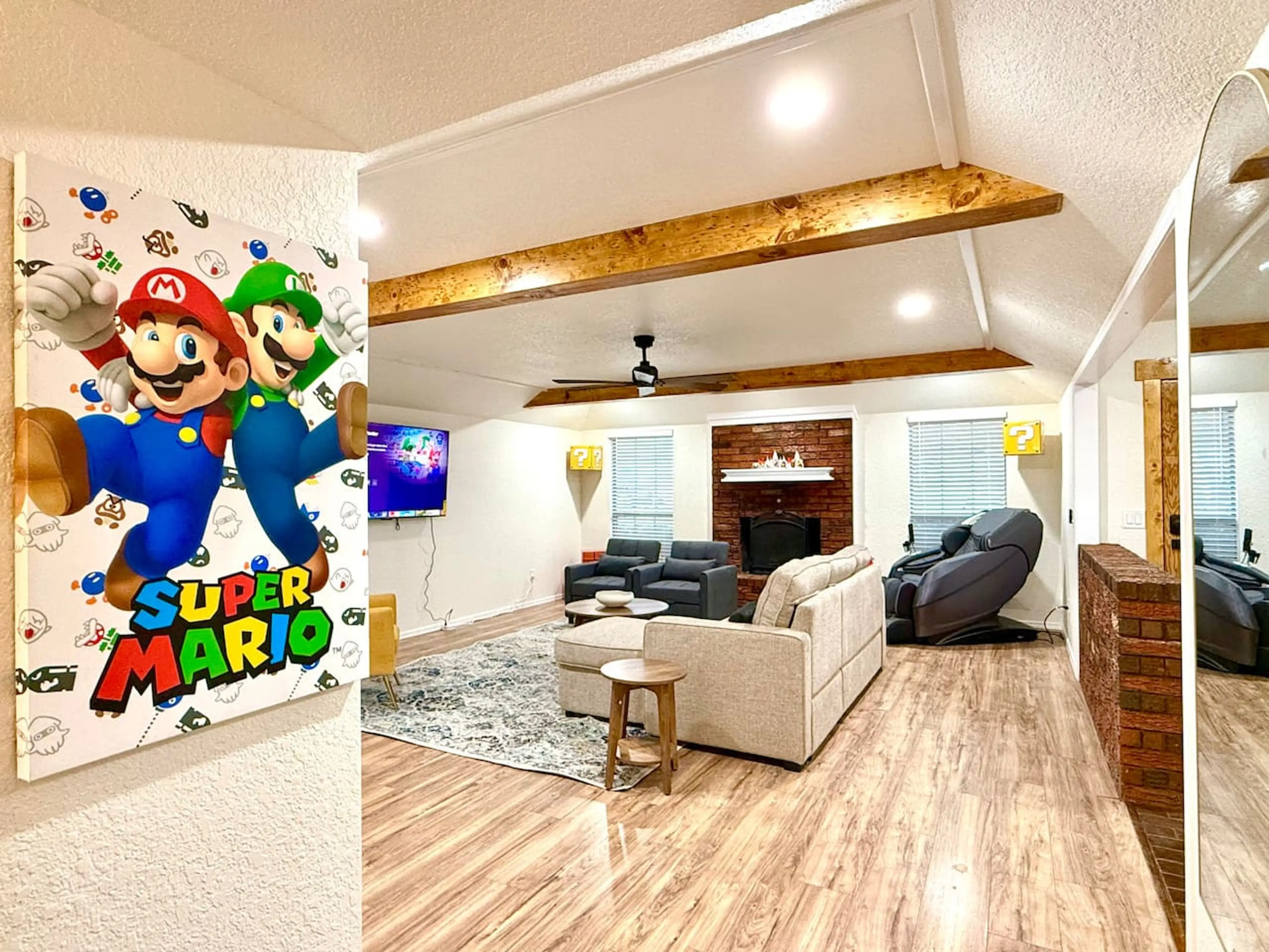 Wahoo!! Come collect your 5 ⭐ in the newest luxury Super Mario Themed home. This home has been carefully designed with all modern facilities, luxury comforts, and unique concepts. Come relax and enjoy. Key amenities: 🍄 Unique Themes 🎬 Huge living room with bar counter & 65" HDTV; 💆 Massage chair...